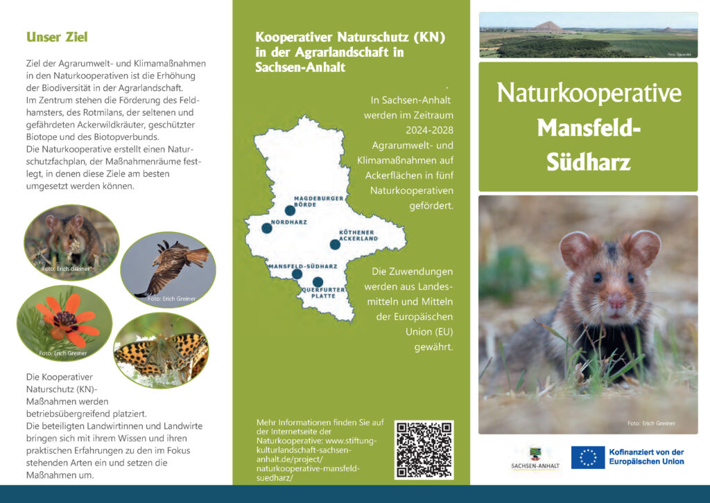 In der Naturkooperative Mansfeld-Südharz arbeiten 12 Landwirtschaftsbetriebe zusammen. Sie platzieren die biodiversitätsfördernden Agrarumwelt- und Klimamaßnahmen betriebsübergreifend so, dass sie die größte Wirkung für die Zielarten entfalten. Zielarten sind der Feldhamster, der Rotmilan, seltene Ackerwildkräuter und Insekten.