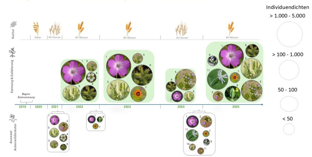 Die Wiederansiedlung bedrohter Ackerwildkräuter in Sachsen-Anhalt wurde bereits versuchsweise im „Modellprojekt zur Verbesserung der Situation von Ackerwildkräutern in Sachsen-Anhalt“ gestestet und wird im Projekt „Erhaltung und Wiederherstellung der gefährdeten Segetalflora Sachsen-Anhalts“ erstmals auf mehreren Äckern in Sachsen-Anhalt